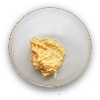派皮制作:将黄油软化后,加入蛋黄,蛋手动打蛋器搅拌成乳霜状