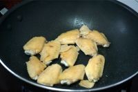 锅里下油,大火烧热后加入鸡翅,煎香。