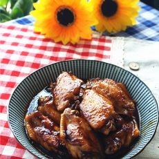 开盖,用筷子刺穿鸡翅,轻松穿刺表示鸡翅已熟,此时酱汁也稍微浓稠,可以熄火,装起鸡翅。