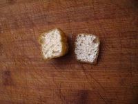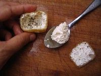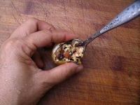 用小勺沿油豆腐四边挖,挖出的肉肉和油豆腐壳;