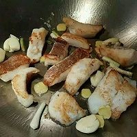 热锅中火放入姜,葱,蒜片,将鱼肉煎两面黄熟就可以!太熟会老了