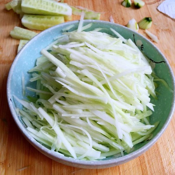 黄瓜去皮切丝,为了爽口黄瓜心不要。
