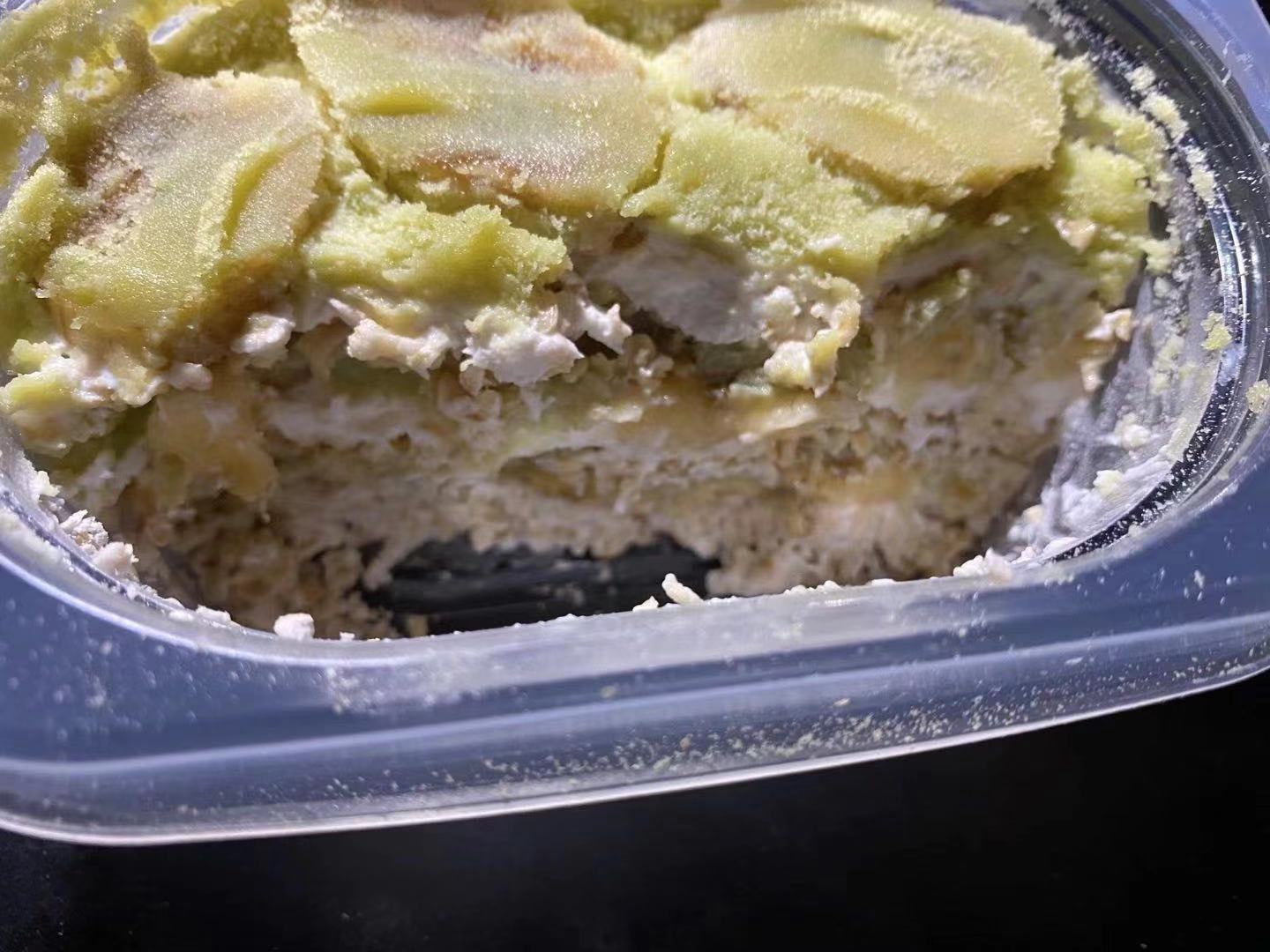 在盒子中将麦片、酸奶、香蕉、豆浆粉依次铺好