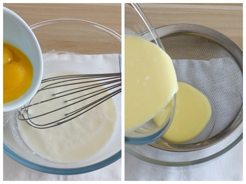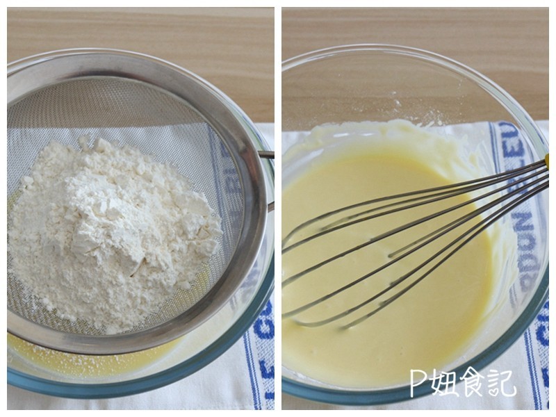 使用打蛋器取一部分的蛋白霜,和步骤6混合拌匀。