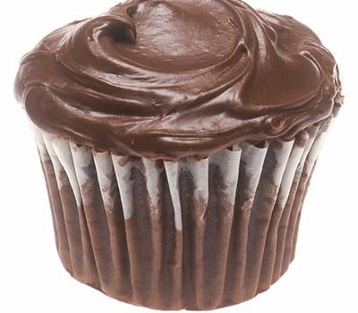 将奶油巧克力酱均匀涂抹在小蛋糕上面