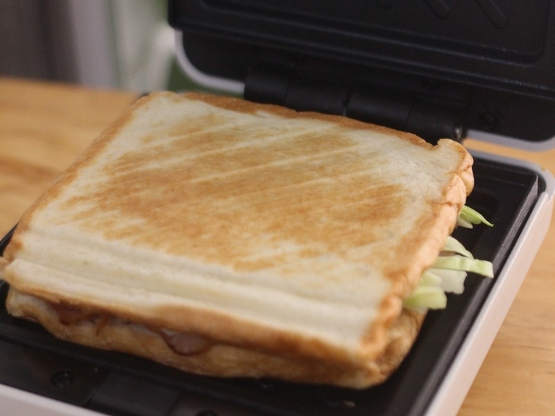 三明治机压制1分钟,看到表皮上色均匀就可以啦