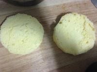 将6寸戚风蛋糕切成两片一厘米厚度的蛋糕片,一大一小