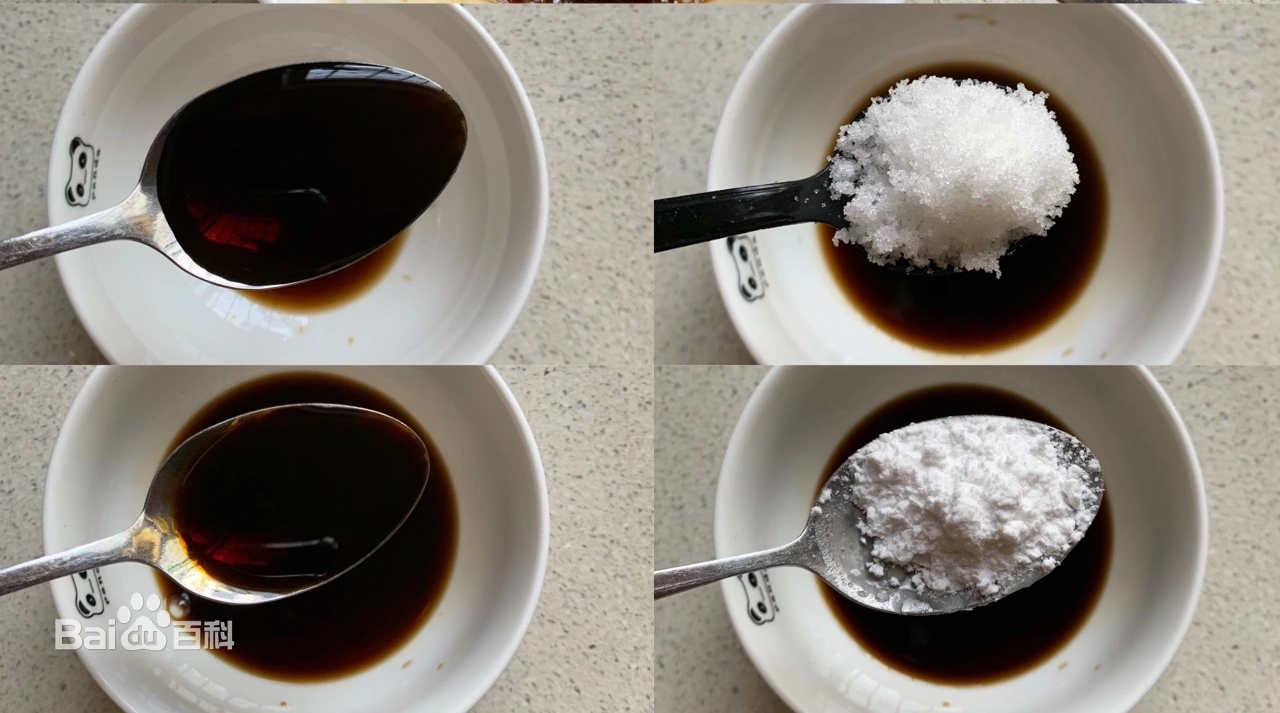调鱼香汁:香醋4勺、糖3勺、生抽2勺、淀粉1勺,搅拌均匀。