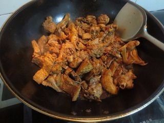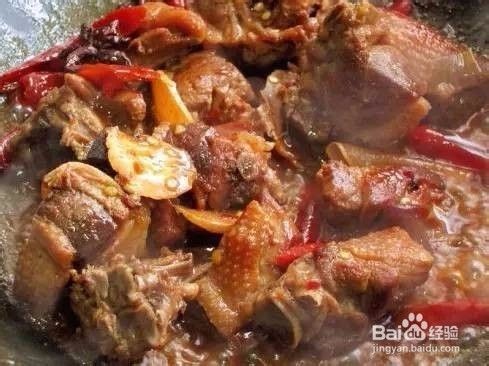 将炒锅放少许油,把鸭块放入煸炒,鸭块比较油,炒到看到鸭块渗出油时,把八角、桂皮、红尖椒、葱段和姜丝放入继续煸炒,再加少许酱油和料酒翻炒至鸭肉着色