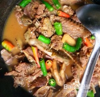 不断翻炒至收汤,放鸡精起锅(可以不放,因为啤酒含有谷氨酸,也有提鲜作用),装盘后洒葱末和香菜点缀一下即可上桌食用