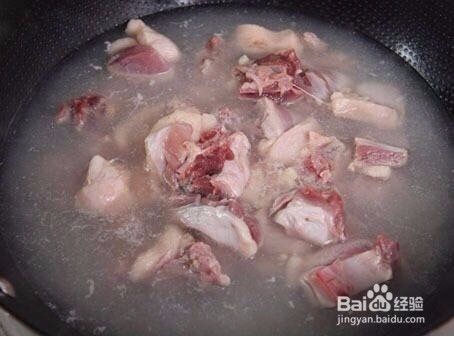 上锅加清水,加姜片,将鸭块放入,大火煮开将鸭块捞出沥水,挑出姜片,用清水洗净鸭块
