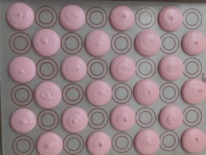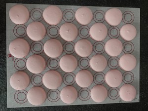 装裱花袋。挤成小圆饼。托起烤盘,轻轻拍盘底。震出大气泡。其实你好好拌面糊的话,基本没气泡。晾皮晾到表皮变不粘手软壳。晾皮期间烤箱预热160度。160度15-16分钟。