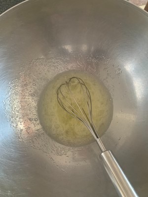 砂糖60g直接放进蛋白里,用手抽搅拌一会儿。不是打发,不讲究任何手法,为的是让砂糖融化。所以才要用常温蛋白。