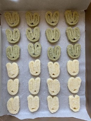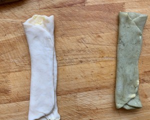 面粉、抹茶粉(可选)、糖、盐、水、隔水融化的黄油混合,揉捏成团。盖保鲜膜松弛30min。