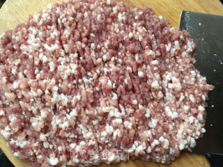 猪腿肉去皮洗净,先切成条,再切成像石榴籽那么大,最后稍微剁几下