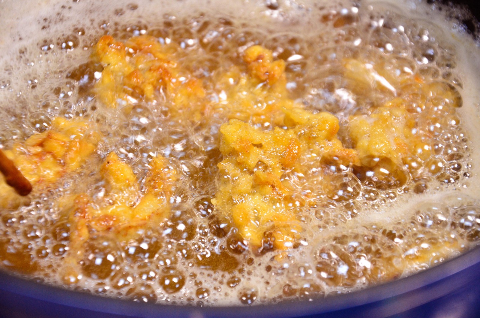 将腌好的鸡入锅油炸至表皮金黄。