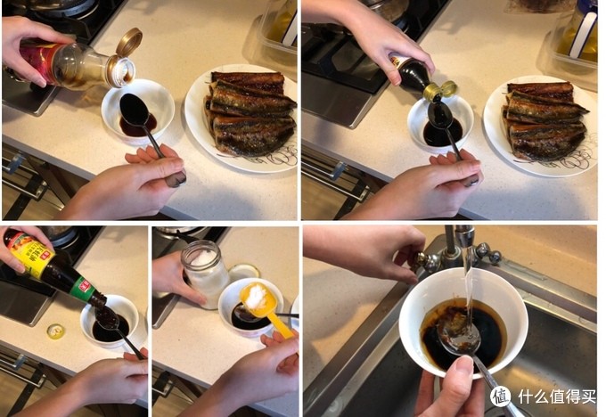 调配酱汁,取生抽2勺、日式酱油1勺、蚝油1勺、白糖少量,与清水少许,并全部将其搅匀
