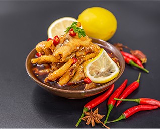 凤爪洗净,用水煮断生(各地风味不同,绵竹清道做法则是将鸡爪煮致较软,去骨,切忌不可煮太久以致成绵软过烂),煮好后捞出,用清水洗去浮末,切成两块到三块,晾干。