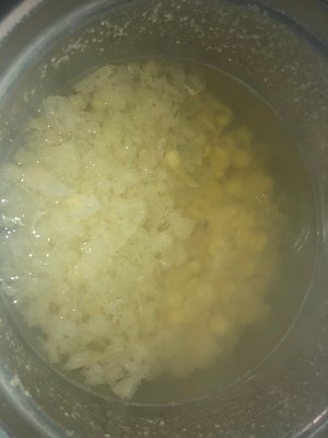 莲子松化后倒入、雪耳、腐竹、冰糖、鹌鹑蛋最水再次沸腾倒入打发鸡蛋缓慢倒入注意及时搅拌,然后关火