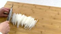 首先将白萝卜切丝装盘。