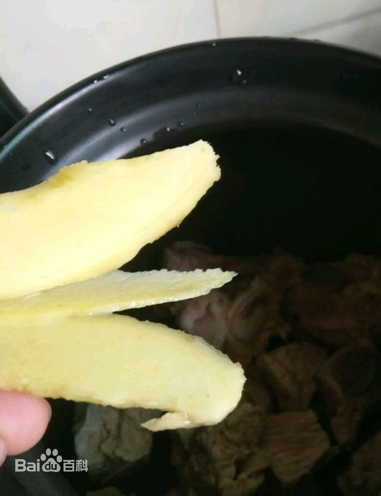 重新打一锅水,水中放入姜片和排骨一起炖30分钟