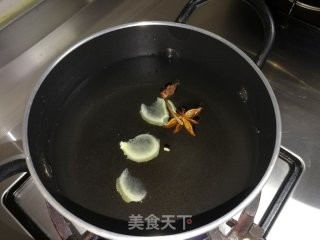 一块儿大料,三片姜,凉水煮开,再煮5-10分钟后,捞出。煮水的工夫,压好蒜泥