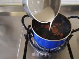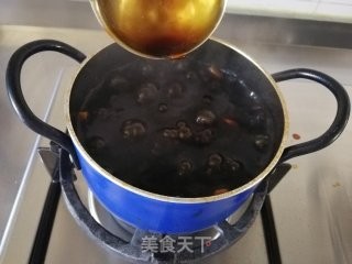 生抽3勺,老抽2勺,料酒1勺,糖半勺,加入开水中,先下大肠,水再次煮开,下猪肝,熬3-5分钟。