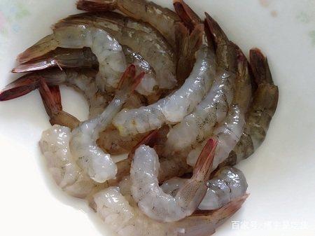 首先将新鲜下清洗干净,去壳、去虾线、去头,处理干净,放入少量食用盐搅拌,等待备用(将虾的后背壳用剪刀剪破,就可以将虾壳顺利剥下啦)