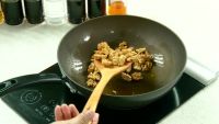锅留底油,倒入鸡丁,小火炒至变色,再倒入胡萝卜丁、青椒丁 ,翻炒片刻 ,放半勺盐 ,少许白糖,倒入核桃仁, 炒匀 ,淋入海鲜酱油, 拌匀 即可享用!