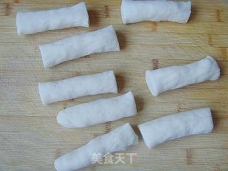 醒好的面搓长条切小剂子,然后分别擀成很薄的面皮,这时案板上抹油比较好操作