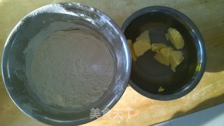 将面粉称出,另外再拿一个碗称出黄油,水,白糖