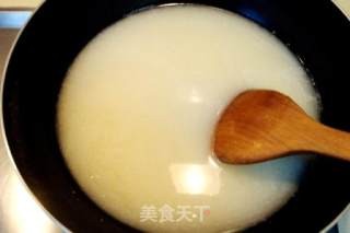 打开火用勺不断的搅拌,开锅后小火熬制,面糊浓稠时便可关火