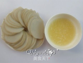 把蒜捣成蒜泥,灌肠切薄片;蒜泥加盐用凉开水调匀,滴一点儿香油