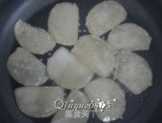 平底锅里放油,放入灌肠片煎制,中低火把灌肠片煸煎至两面金黄色