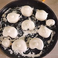 糯米粉和內酯豆腐混(糯米粉慢慢添加,不要一下子把120克都导入,不同品牌内酯豆腐含水量不同) 揉成光滑的豆腐糯米团(是表面湿湿的但不黏手的状态) 分成30克左右的剂子,分别揉圆(这个量大概可 以做6个30克的,2个25克左右的) 用余下的面团用模具压出椭圆形,一切二做耳朵 用翻糖工具压下耳朵,沾点水将耳朵黏在头部两侧,取一小撮揉圆做成鼻子和眉毛 用竹签或刮板做出屁屁形状,用小手指压大些,让分界更明显 再取点面团在手心搓成长条,卷下做成尾巴,同样面团刷点水将尾巴黏上去 用相同方法做好剩余的团子