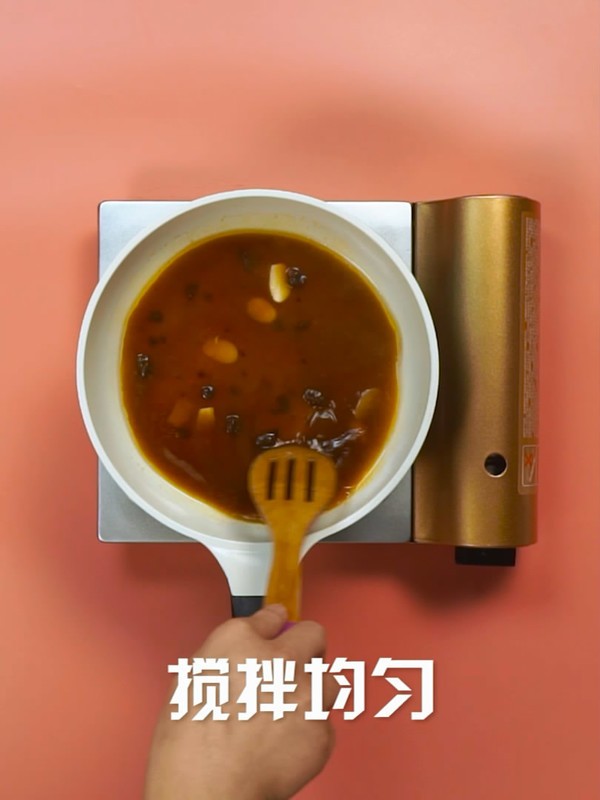 食用油5ML,倒入蒜片,大火爆香,水300ML,XO酱15克,搅拌均匀