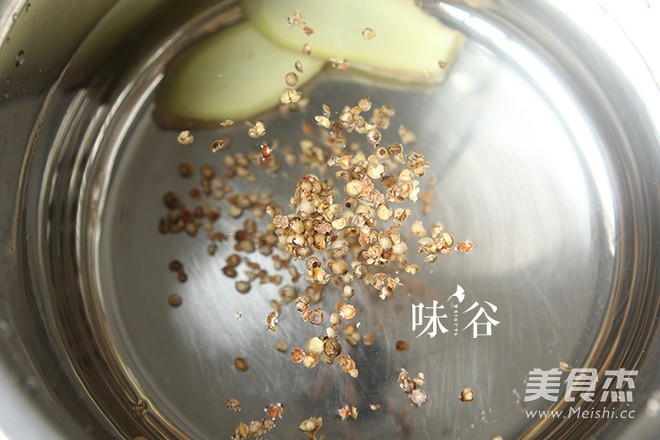 锅内烧开水,放入胡椒,姜片煮五分钟。