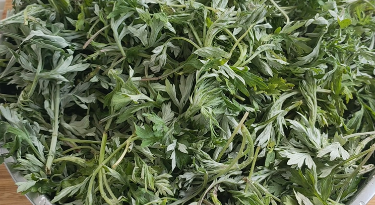 水开后加入2克小苏打,放入艾草,3分钟后捞出