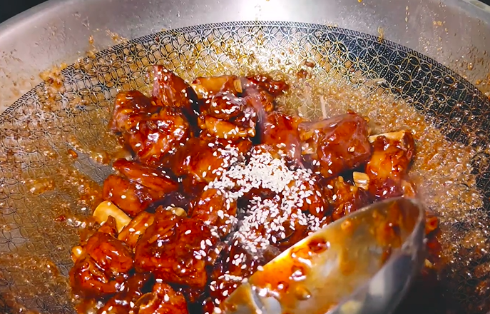 翻炒均匀后,加上熟白芝麻