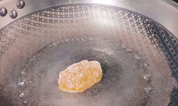 锅中放入一小碗凉水,再放入冰糖熬化