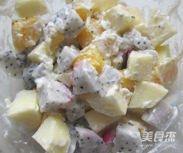 水果备好,丘比香甜沙拉酱一包