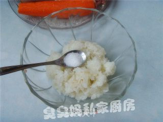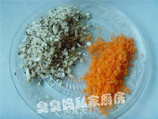 胡萝卜、香菇洗净切碎末备用。