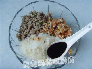 猪肉馅加入料酒、盐腌制10分钟。