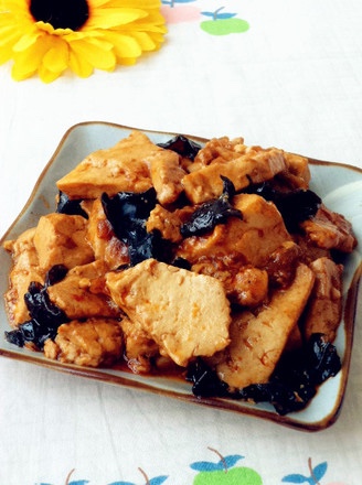 汤汁收少,木耳入锅炒。淋入薄芡,芡熟,即可出锅装盘。