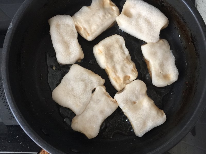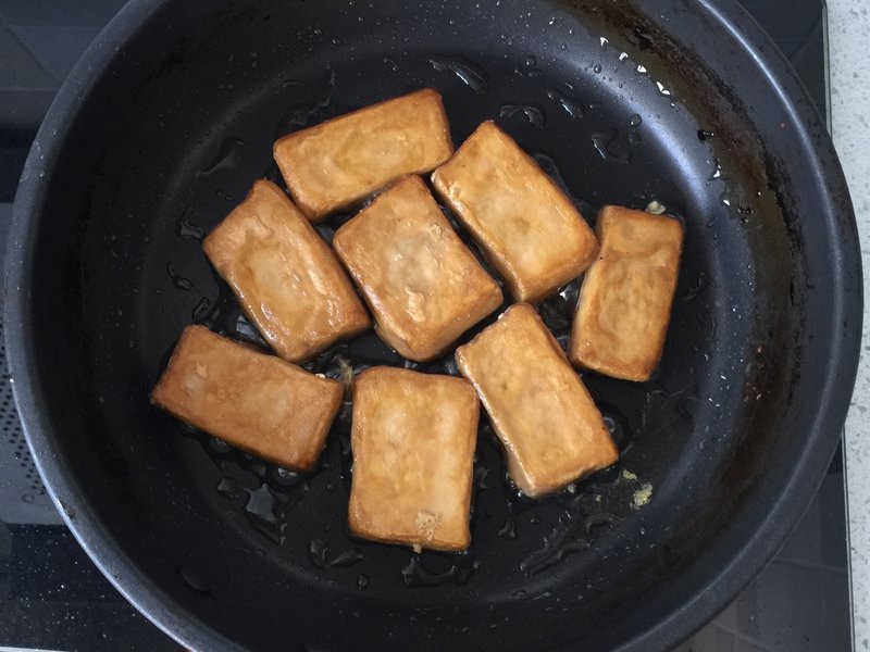 锅中少量油 将毛豆腐小火慢煎