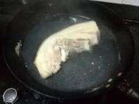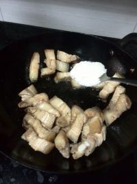 锅烧干,将切好的五花肉放锅中小火炒干水分