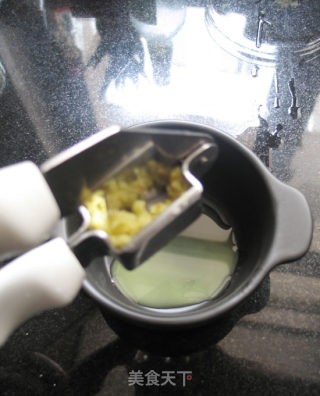 把剁好的姜茸放进蒜茸夹里压出姜汁。