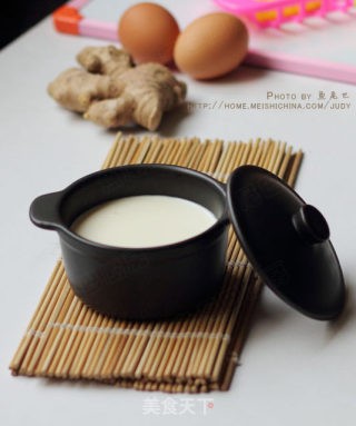 待温度降至70度左右时,倒入装着姜汁的碗中,并盖上碗盖。