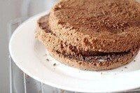 把烤好的蛋糕连模型一起倒扣在架子上,1小时后脱模黑森林蛋糕的做法 步骤6 把脱模好的蛋糕坯子片成3片均匀厚度的蛋糕片