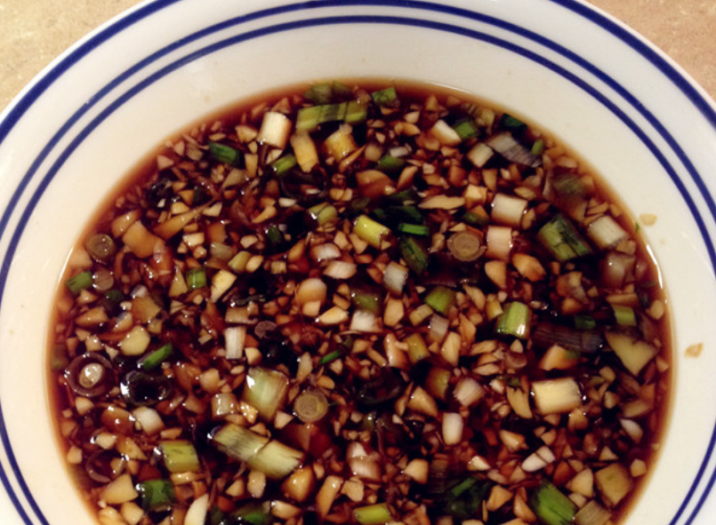 调配鱼香汁:姜葱蒜切末,加入1勺盐、1勺淀粉、3勺酱油、4勺砂糖、4勺醋、5勺水调匀